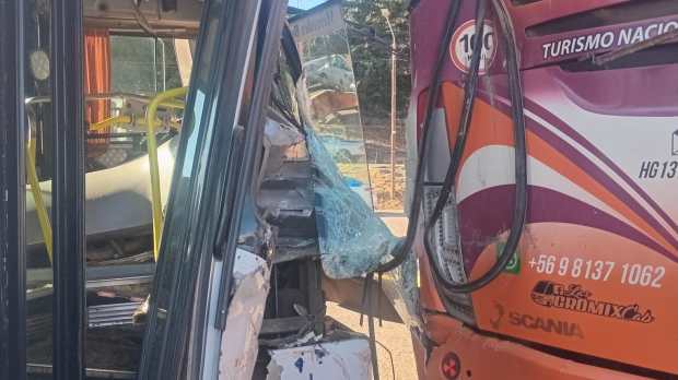 Sociedad Un colectivo de Mi Bus chocó contra un micro turístico de Chile en la terminal de Bariloche El chofer indicó que cuando comenzó a purgar el combustible, encendió el motor y el micro comenzó a rodar sin poder frenarlo. Por Redacción