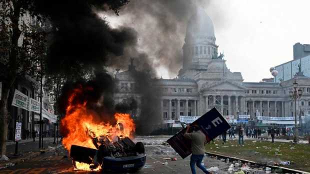 Los diputados Eduardo Valdés, Carlos Castagneto, Luis Basterra y Leopoldo Moreau tuvieron que ser atendidos por el personal médico. Por su parte, los manifestantes prendieron fuego un auto del medio Cadena 3. Los incidentes comenzaron al mediodía y todavía se prolongan en la zona.