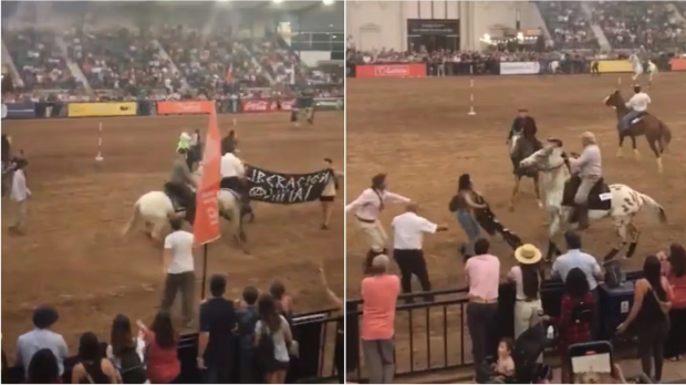 Sociedad Protesta en La Rural: jinetes echaron a activistas veganos a golpes, en medio una exposición de caballos Activistas veganos irrumpieron durante una muestra equina en La Rural. El hecho desató tensiones con jinetes que los expulsaron entre gritos y corridas. Mirá el video del enfrentamiento. Por Redacción