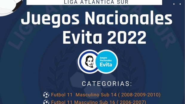 Sociedad Inscriben en Viedma para el torneo de fútbol de los Juegos Nacional Evita La etapa local está destinada a las categorias masculino Sub 14 (2008, 2009, 2010), masculino Sub 16 (2006, 2007) y mixta Sub 14 (2009, 2010). Por Redacción