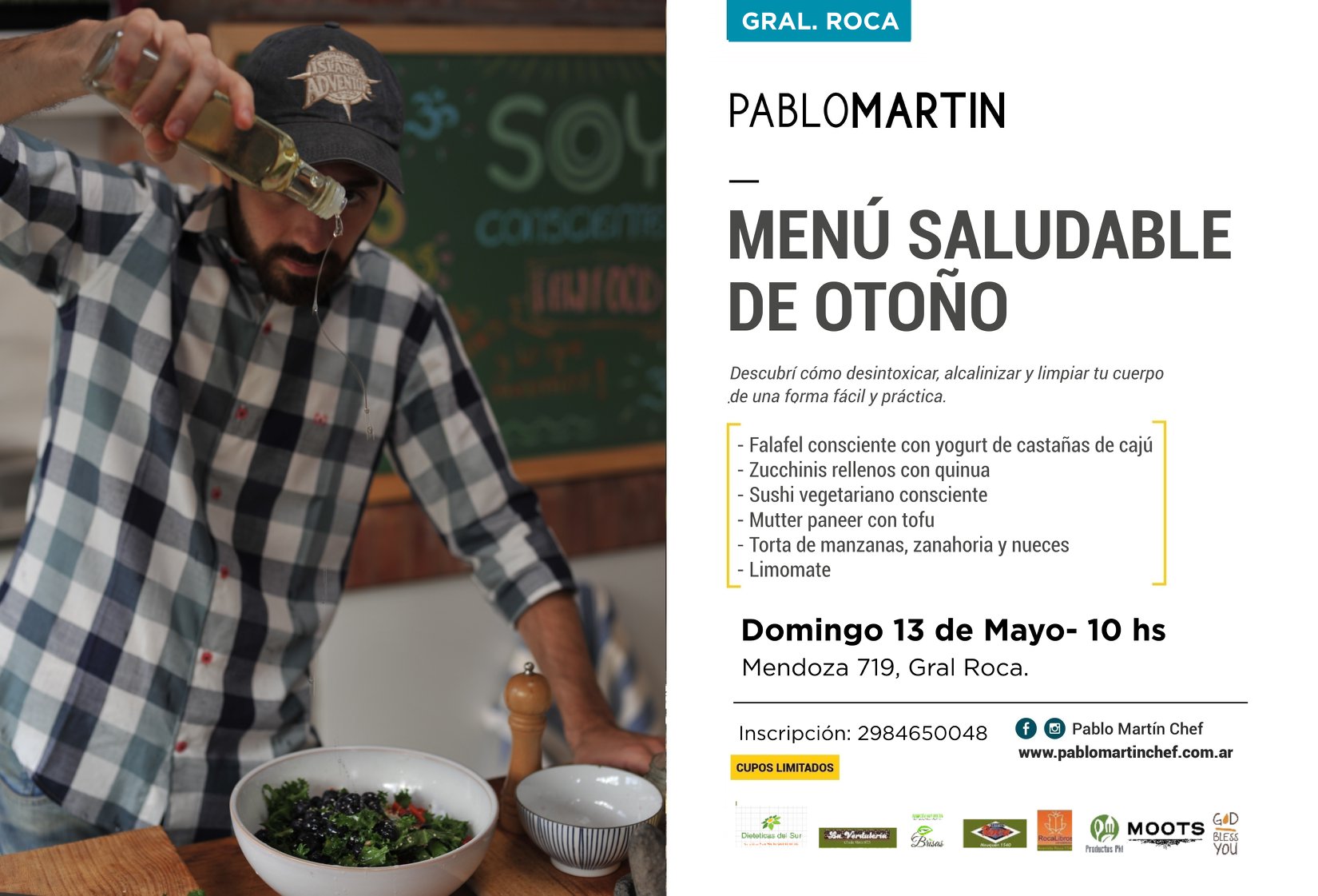 Este sábado 12 y domingo 13 de mayo el chef Pablo Martín ofrecerá una vez más talleres de alimentación consciente con diferentes recetas, para compartir un espacio de consciencia, interactivo, educativo y divertido.