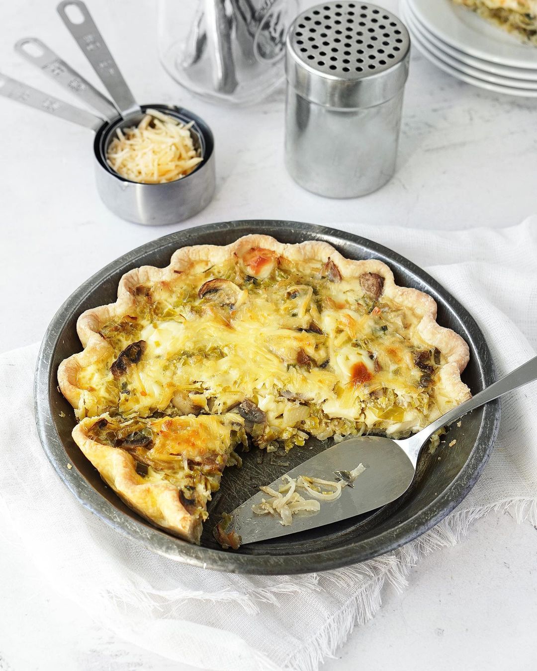 Tarta de puerro y champiñones