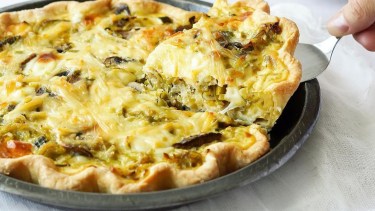 Tarta de puerro y champiñones