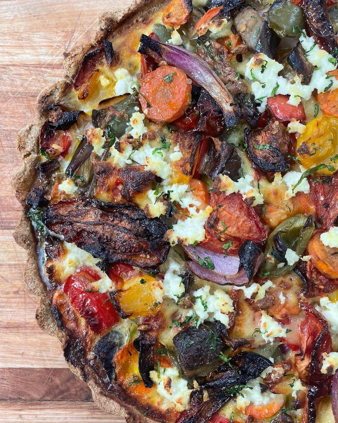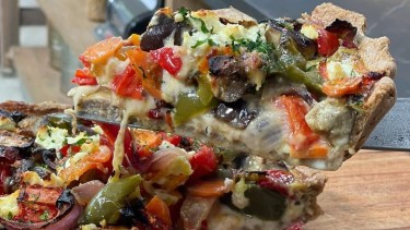 Tarta de tomates asados, cebolla y berenjena
