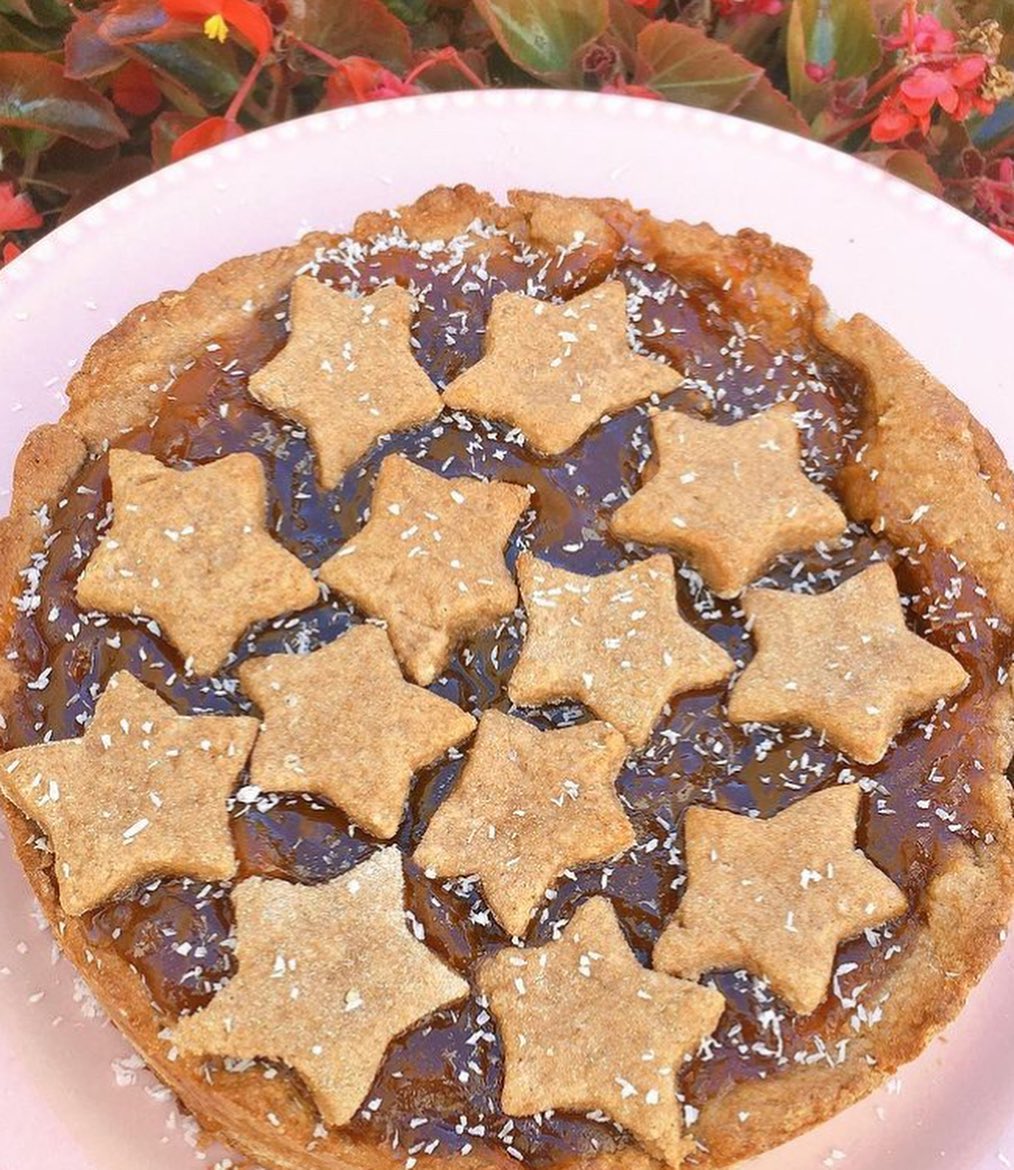 Tip: primero pongo en el horno la masa y el membrillo. Una vez pasados 15 minutos de la cocción agrego las tiras o estrellas.