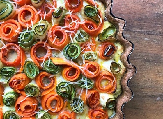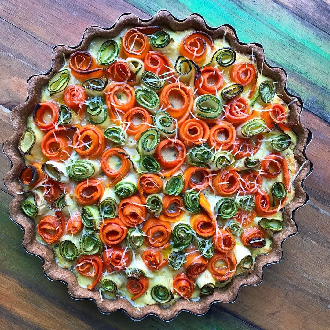 Tarta roll de zucchini, zanahoria y ricotta con masa integral
