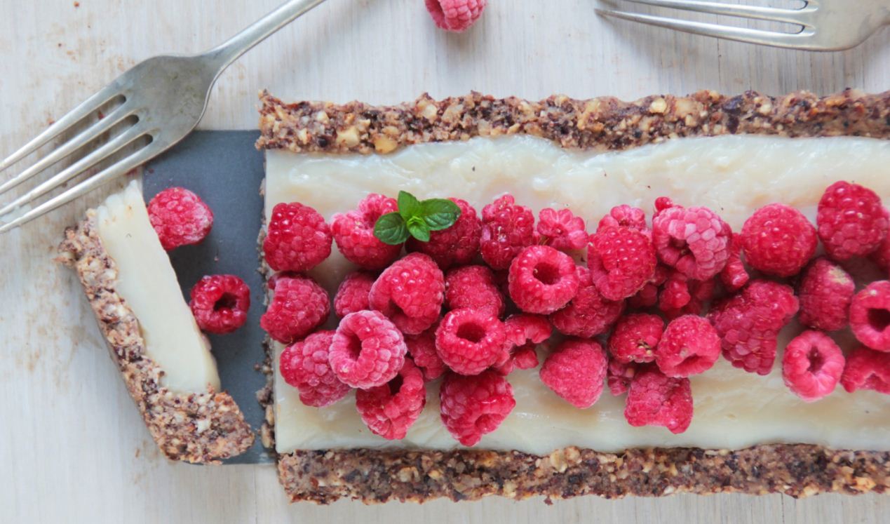 Tiene una base cruda de solo 3 ingredientes y endulzada de forma natural. “Usé avellanas porque es uno de mis frutos secos favoritos, pero podés usar almendras, nueces o incluso maní, así como si no tenés manteca de avellanas la podés remplazar con cualquier otra de frutos secos”.
