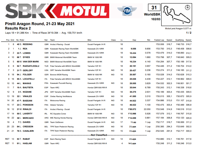 El argentino Leandro Tati Mercado terminó 18 en la súper pole y en la segunda final de la primera fecha del Mundial de Superbike que se disputó hoy en el circuito Motorland Aragón, en España, y donde se impuso Scott Redding en un gran trabajo.