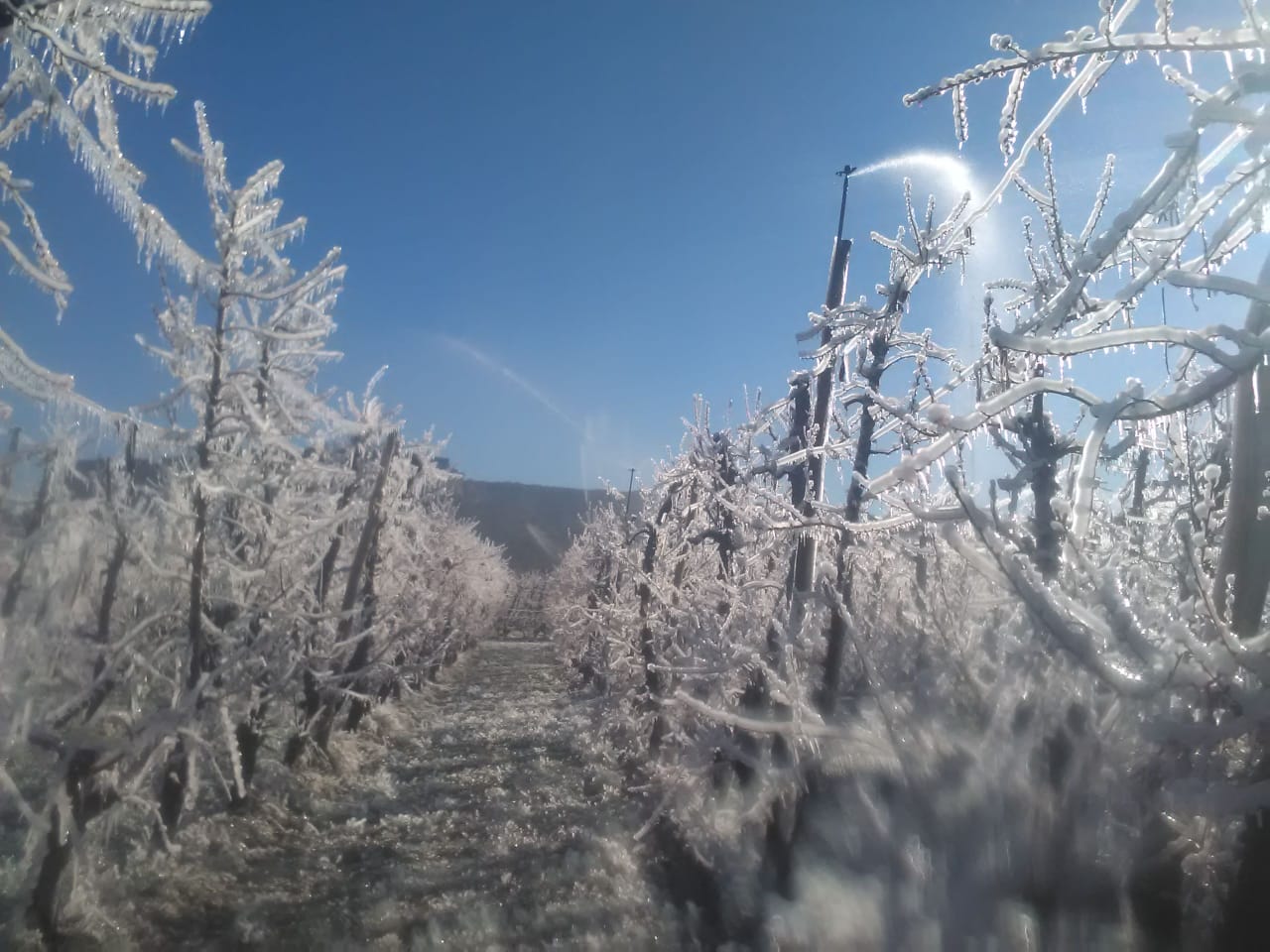 «Observamos una gran intensidad y duración de estos fenómenos. Quienes defendieron su producción con riego por aspersión tuvieron prendido el sistema desde las 22 del lunes hasta que se apagó el equipo, recién cerca de las 13 del martes«, detalló el funcionario.