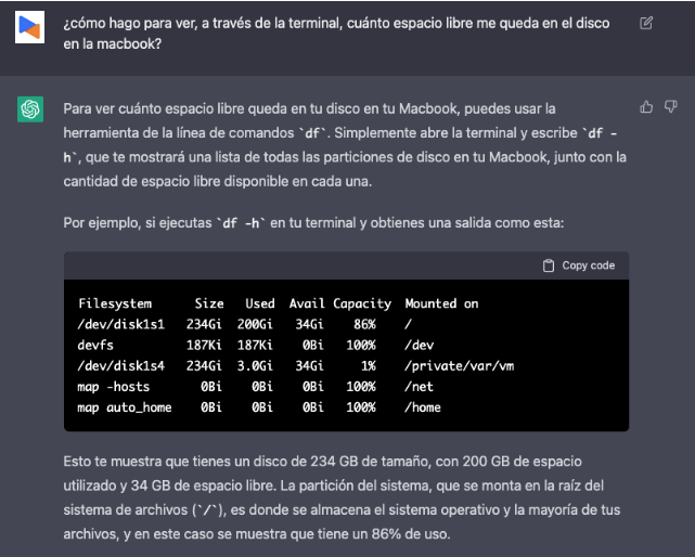 Mi pregunta: ¿Cómo hago para ver, a través de la terminal, cuánto espacio libre me queda en el disco en la MacBook?