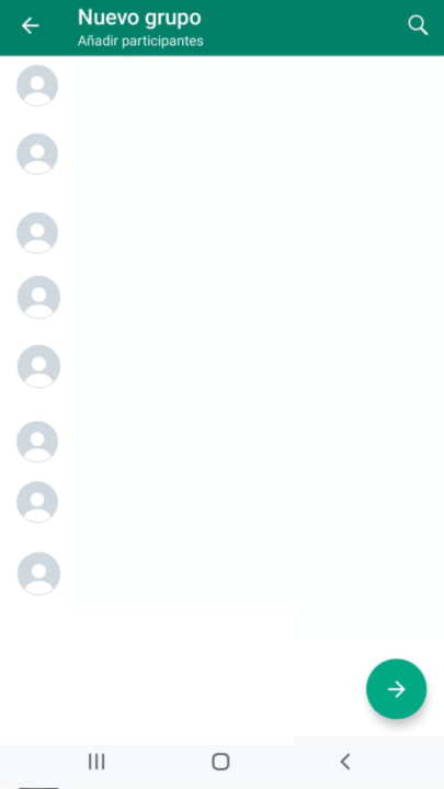 Para crear un grupo, primero tenés que apretar el botón verde de abajo a la derecha con el globo de diálogo.