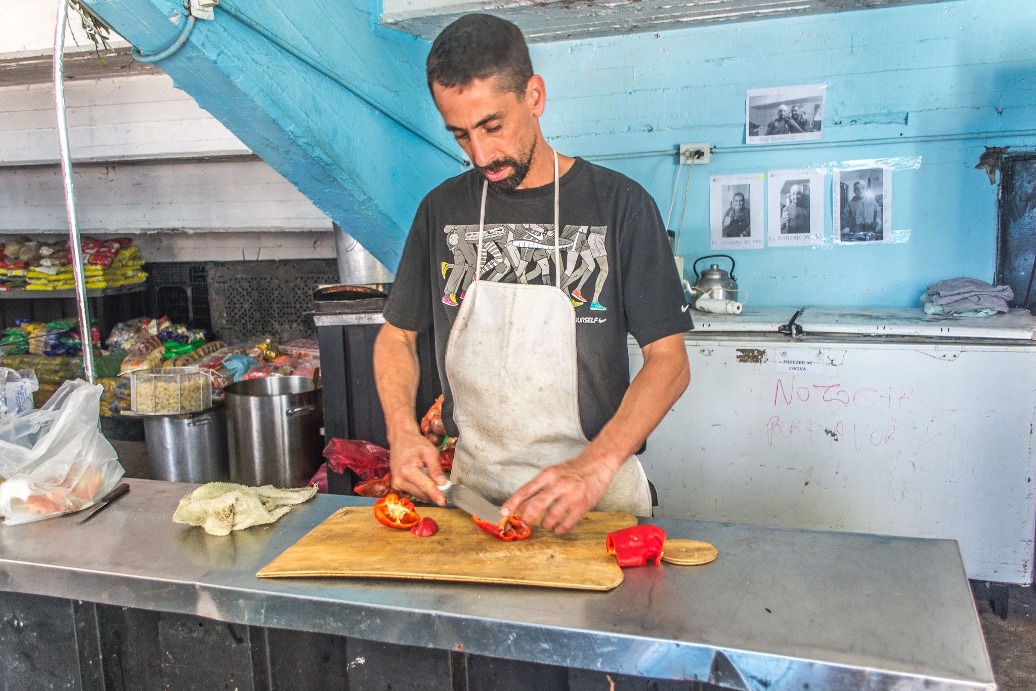 El allense Araya es el principal cocinero del centro. Vive en el club y trabaja como voluntario. (Foto: Facebook «No seas pavote ONG»)