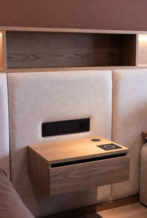 La tecnología también se hace presente: muchos modelos incorporan cargadores inalámbricos y puertos USB ocultos, pensados para reducir el desorden visual y simplificar la rutina diaria. Todo, sin perder de vista el diseño.
