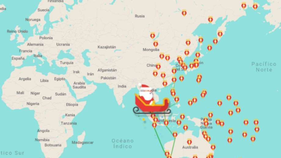 Como cada Nochebuena, Google activó su plataforma Santa Tracker. El mapa interactivo permite ver la ubicación exacta de Santa Claus, cuántos regalos lleva repartidos y cuál es su próxima parada.