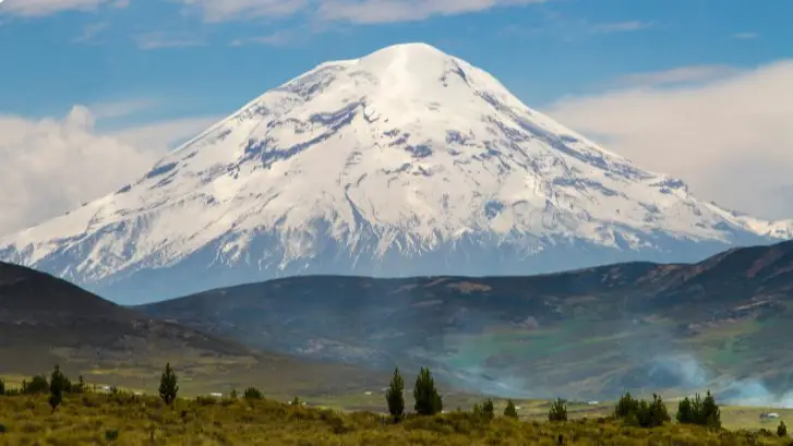 El volcán Chimborazo, ubicado en Ecuador, se encuentra casi exactamente sobre la línea ecuatorial. Aunque su altura sobre el nivel del mar es menor que la del Everest, su posición geográfica hace que su cumbre esté más lejos del centro de la Tierra.