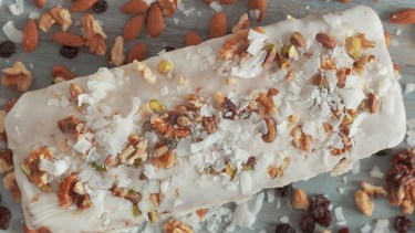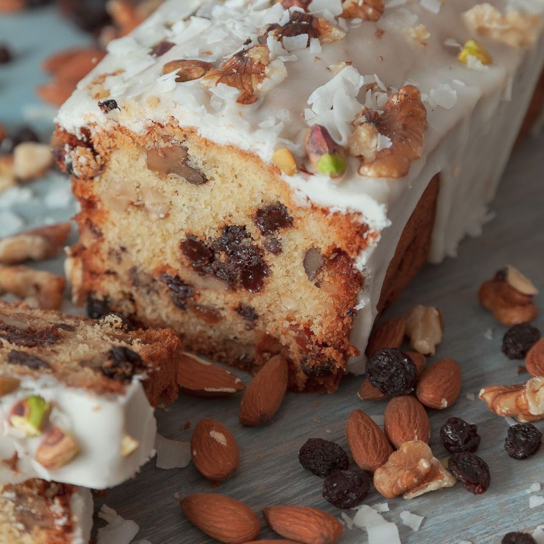 3. Agregar la harina tamizada y mezclar hasta integrar. Sumar pasas, coco rallado y frutos secos.