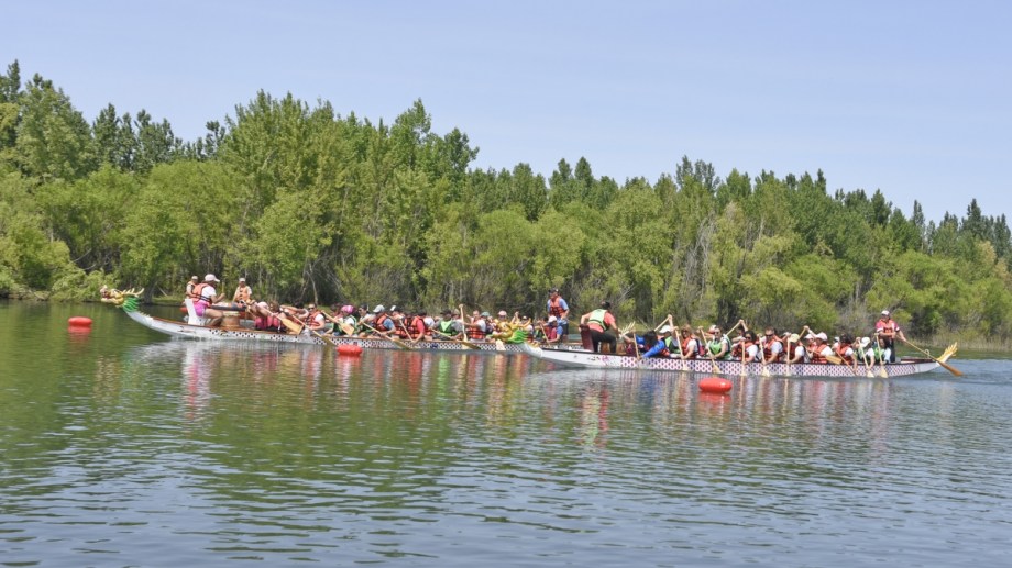 El viernes se realizaron las capacitaciones propias de la disciplina denominada «Bote Dragón», en la que 20 mujeres se suben a un barco con forma de ese animal mitlógico y reman buscando ganarle al único otro barco que corre en simultáneo.
