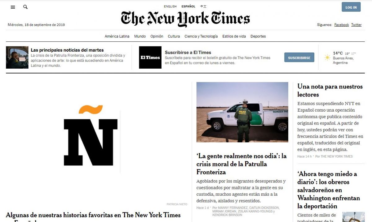 «A partir de hoy, hemos suspendido NYT en Español como un sitio autónomo. Desde que lo lanzamos en 2016, el sitio produjo alrededor de 10 artículos de alta calidad por día, originales o traducidos del New York Times en inglés.