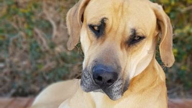 Es un perro cruza Gran Danés que fue descubierto por un grupo de deportistas que remaban. Su dueña lo busca hace meses y ahora intentan atraerlo, porque está muy temeroso.