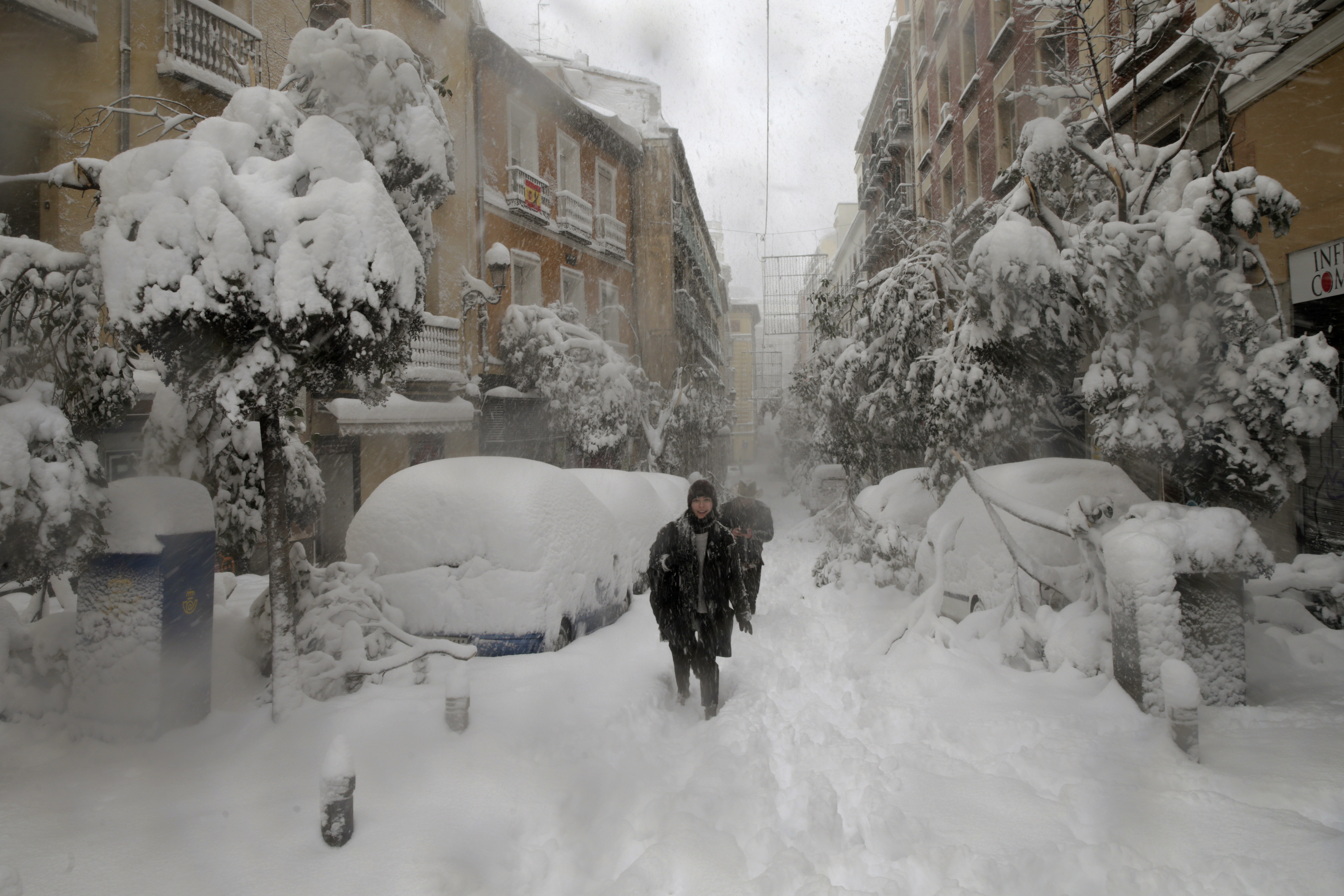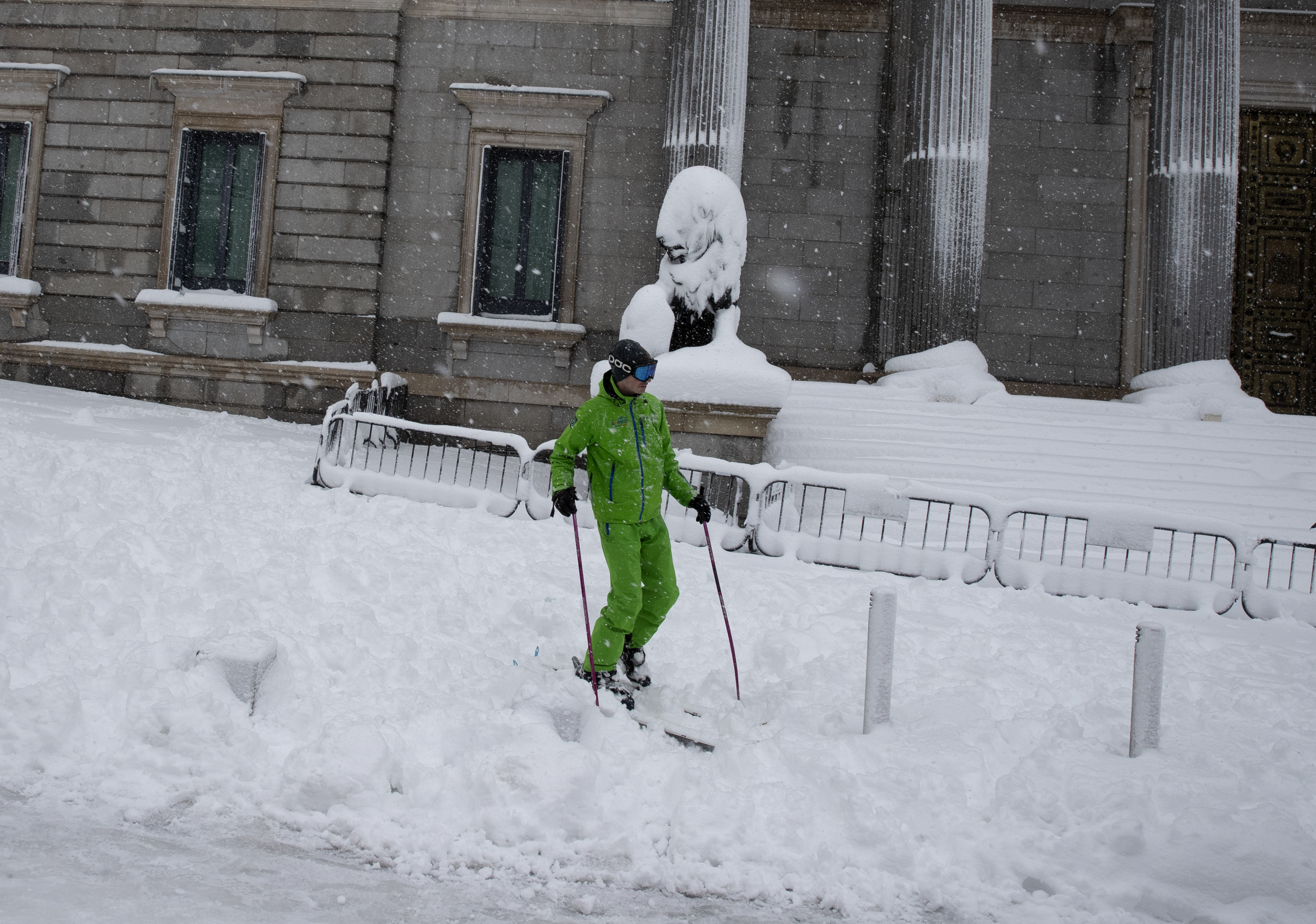 Las escenas que se producían este sábado en la capital y en otras zonas del país eran de caos: cientos de automovilistas bloqueados, el aeropuerto internacional de Madrid cerrado, al igual que los trenes con salida y destino Madrid. Mientras tanto, en estampas inéditas, los esquiadores y los trineos aparecieron en las calles de Madrid.