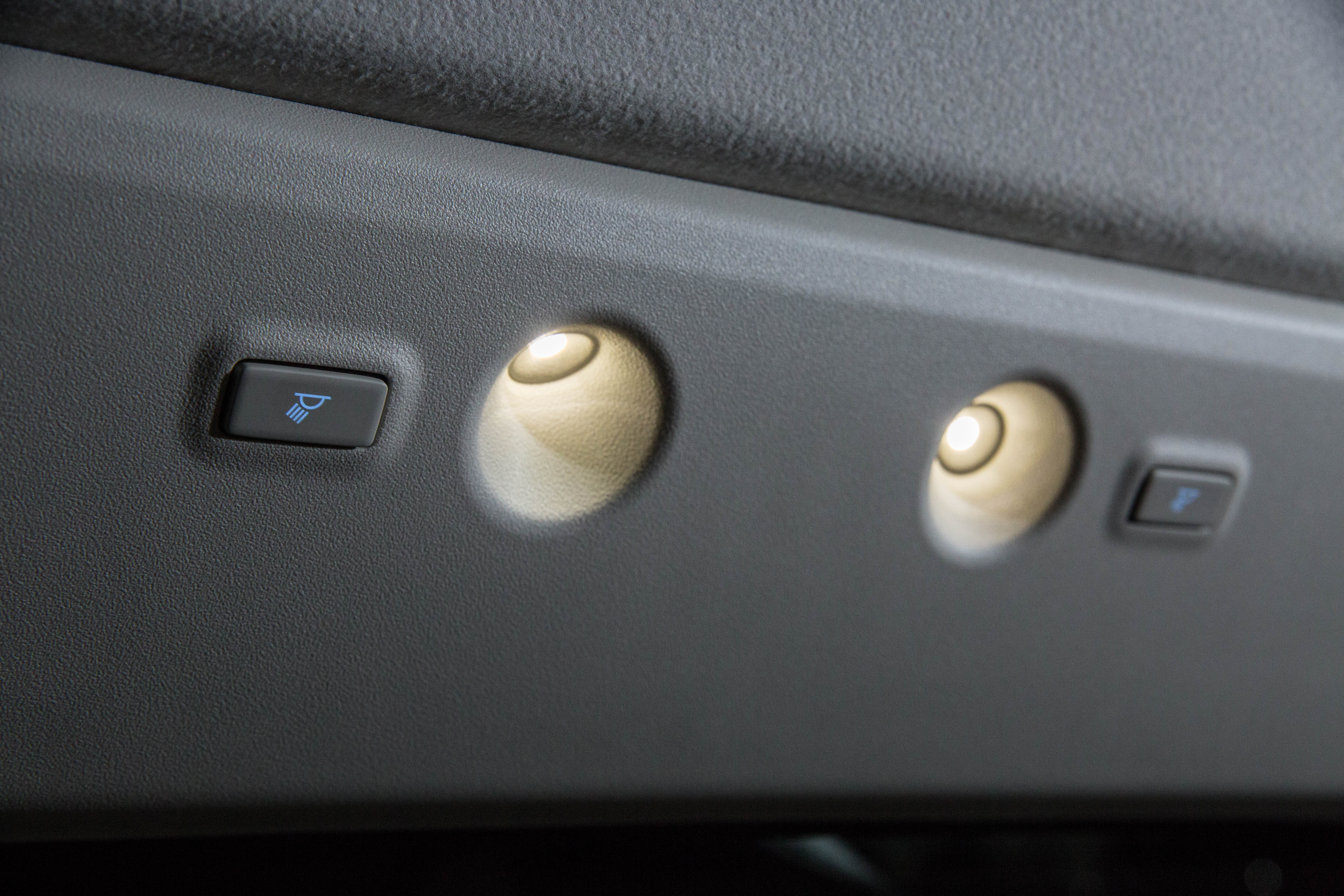Es un vehículo práctico y funcional para sus ocupantes, con amplios espacios para guardar objetos, bandejas portavasos, luces de cortesía LED (8) y puertos USB (6).