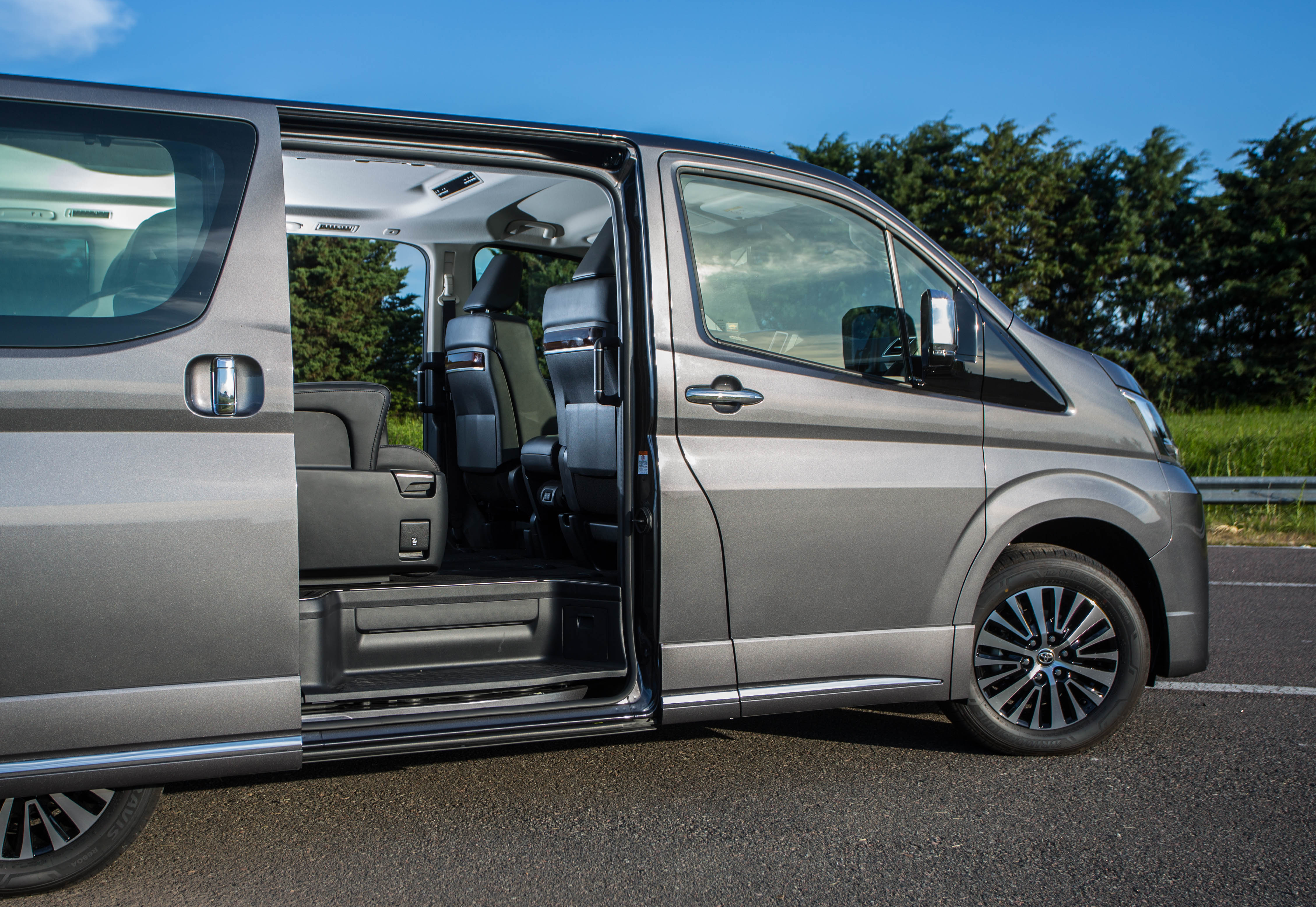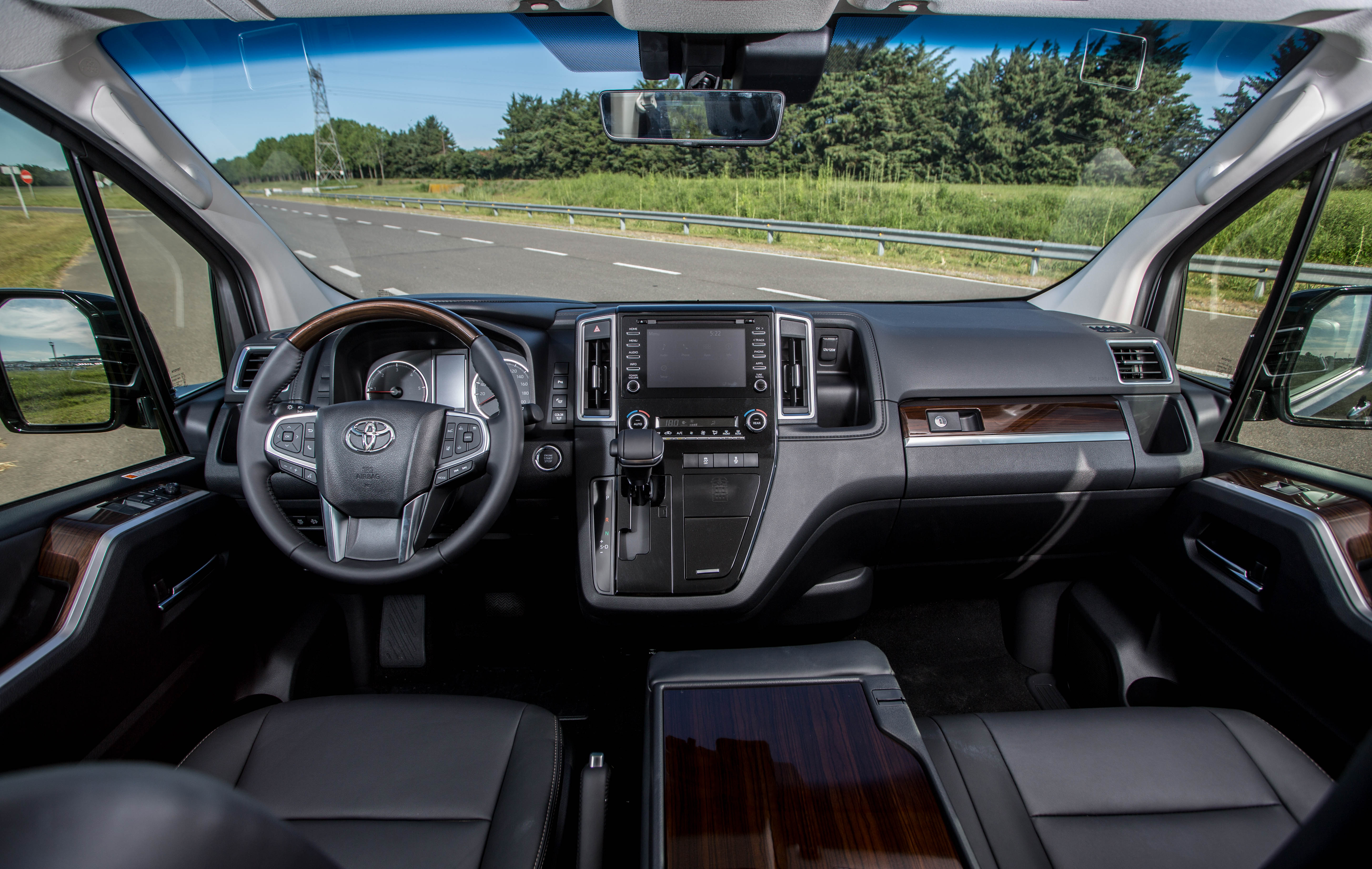Hiace Wagon presenta, en esta configuración, cuatro filas de asientos, todas revestidas en cuero natural y ecológico. Además, la segunda fila cuenta con dos asientos con regulación eléctrica, calefaccionados y soporte para piernas. La última fila de asientos se puede rebatir en la proporción 60/40 asegurando más espacio para guardar objetos en caso de que no se necesiten usar todas las filas.