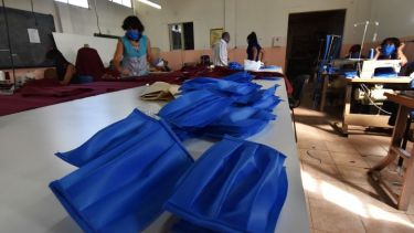 Trabajadoras textiles hacen barbijos y camisolines en Plaza Huincul