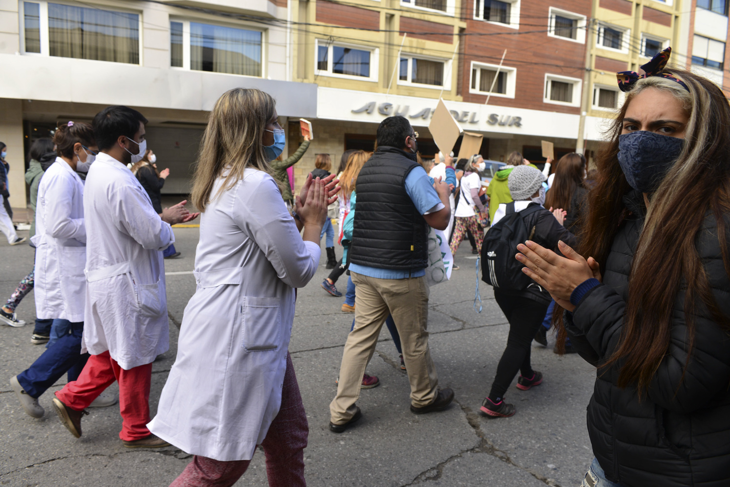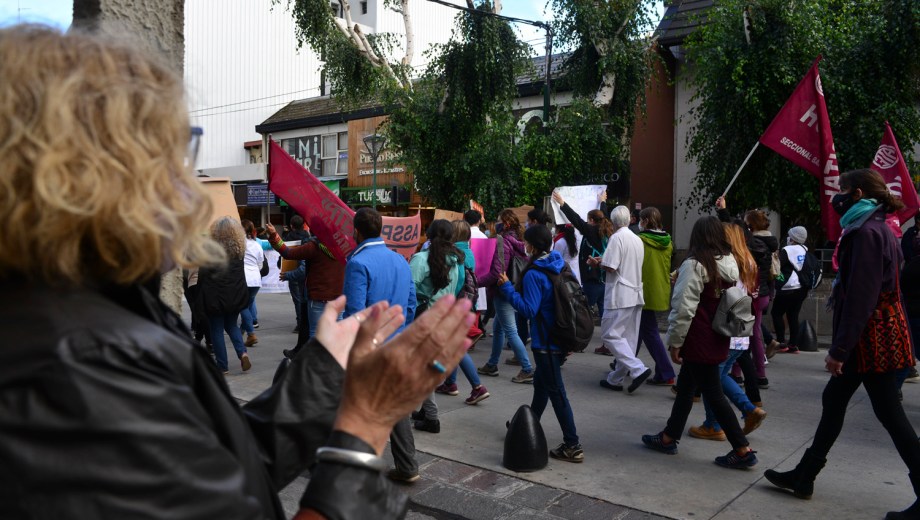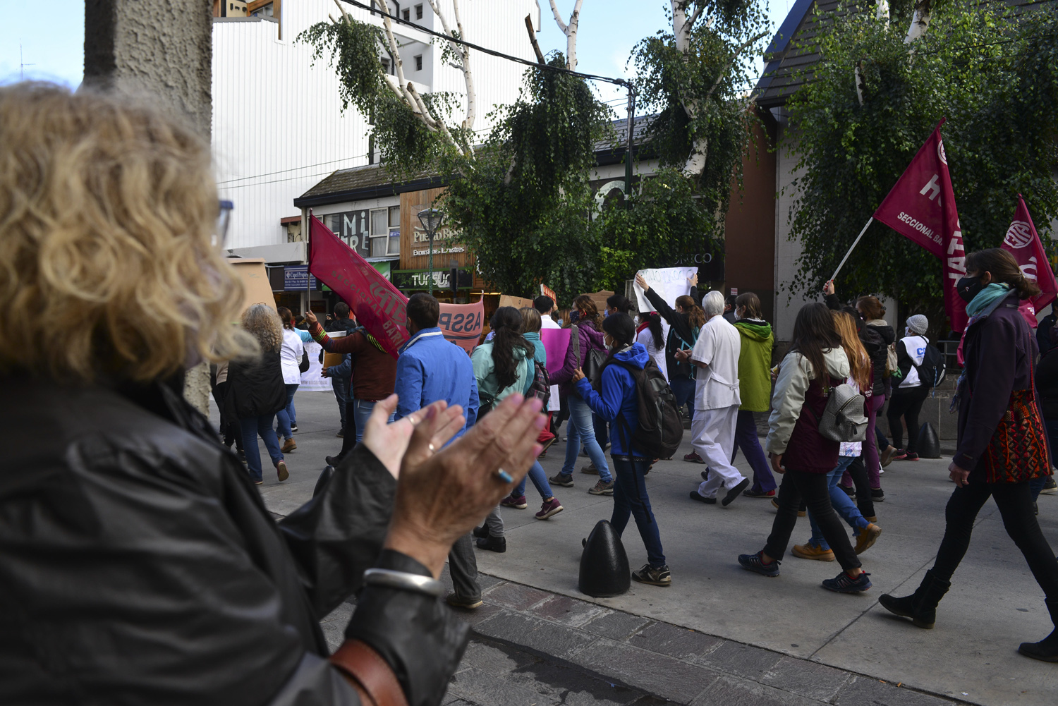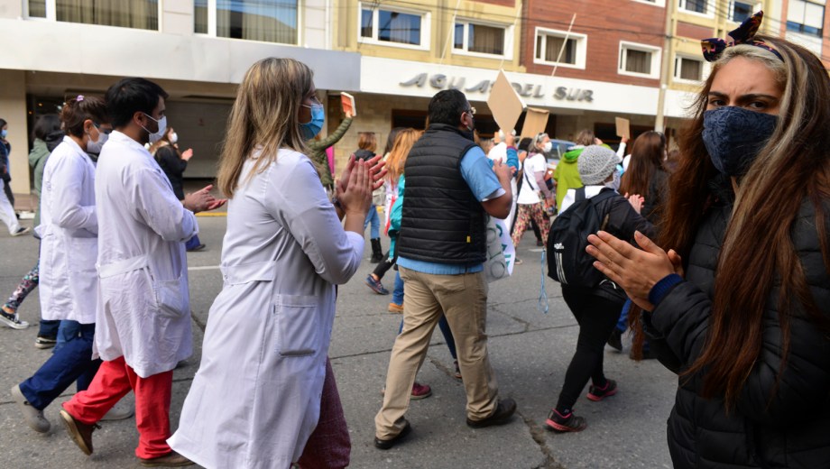 A sus aplausos durante la movilización, se fueron sumando los de la gente que transitaba por la calle Mitre a modo de acompañar el reclamo. «50 lucas gana un médico«, decía indignado un cafetero ubicado frente al banco Nación.