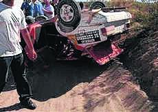 Hay quienes afirman que el piloto salió despedido de su auto y quedó tendido en el camino. Otros, que todos los golpes los recibió en el habitáculo. Su navegante no sufrió lesiones.