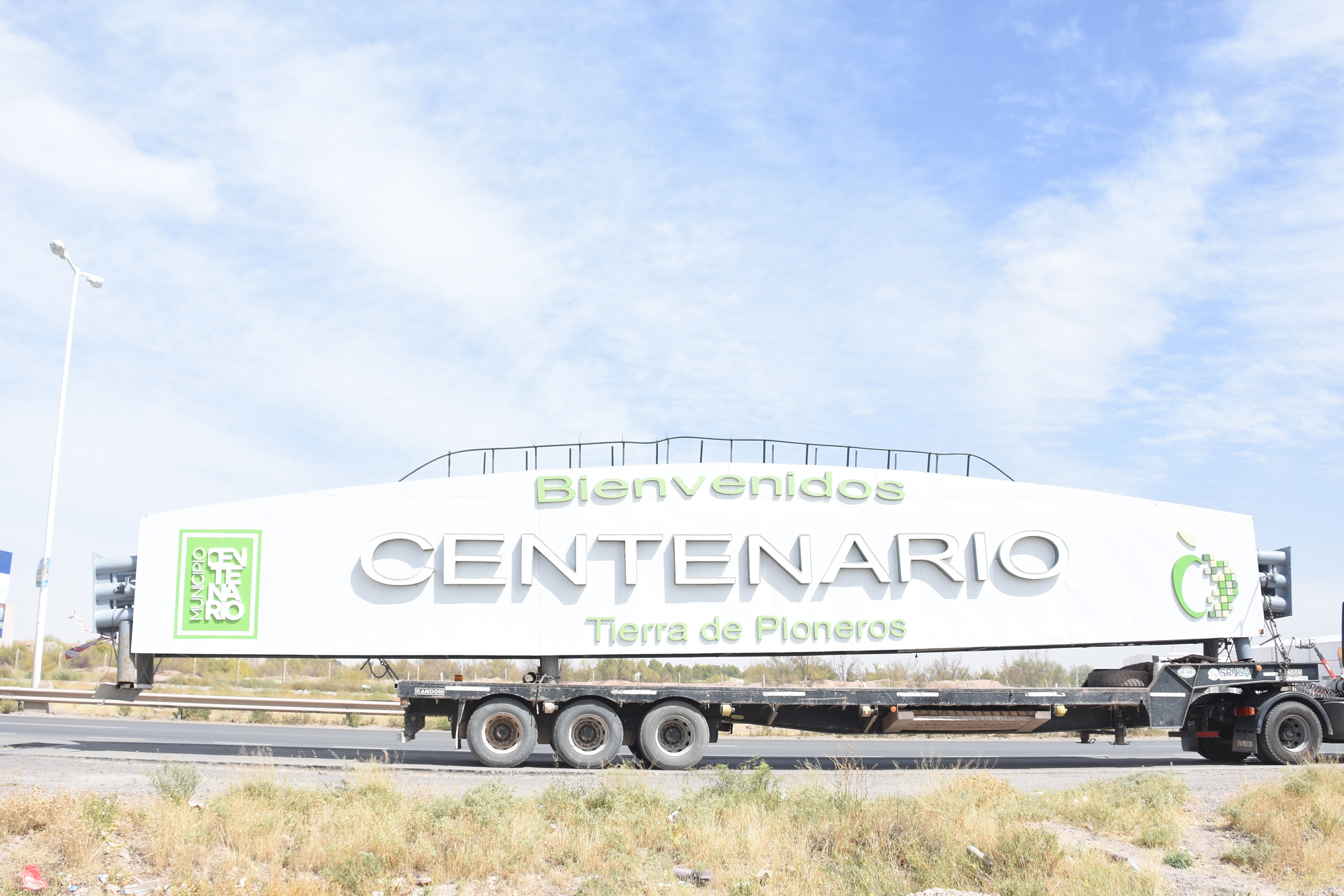 Desde las 8 comenzaron las tareas para instalar el arco que eleva el nombre de Centenario sobre la Ruta 7.