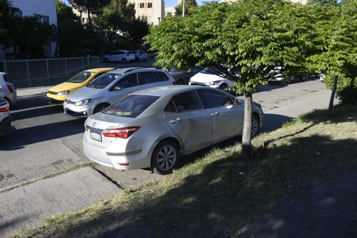 Tras el choque el conductor del Corola perdió el control del rodado y el vehículo dio una vuelta en «U» y terminó en contra mano sobre la calle J.J. Lastra, que es colectora de la ruta, sobre la vereda.