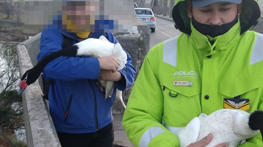 «Ayer por la tarde, uniformados con servicio en el Destacamento Puente Carretero, salvaron la vida de dos aves que se encontraban sobre la cinta asfáltica de uno de los puentes que une la ciudad de Neuquén con la ciudad de Cipolletti», informaron desde prensa de la policía neuquina.