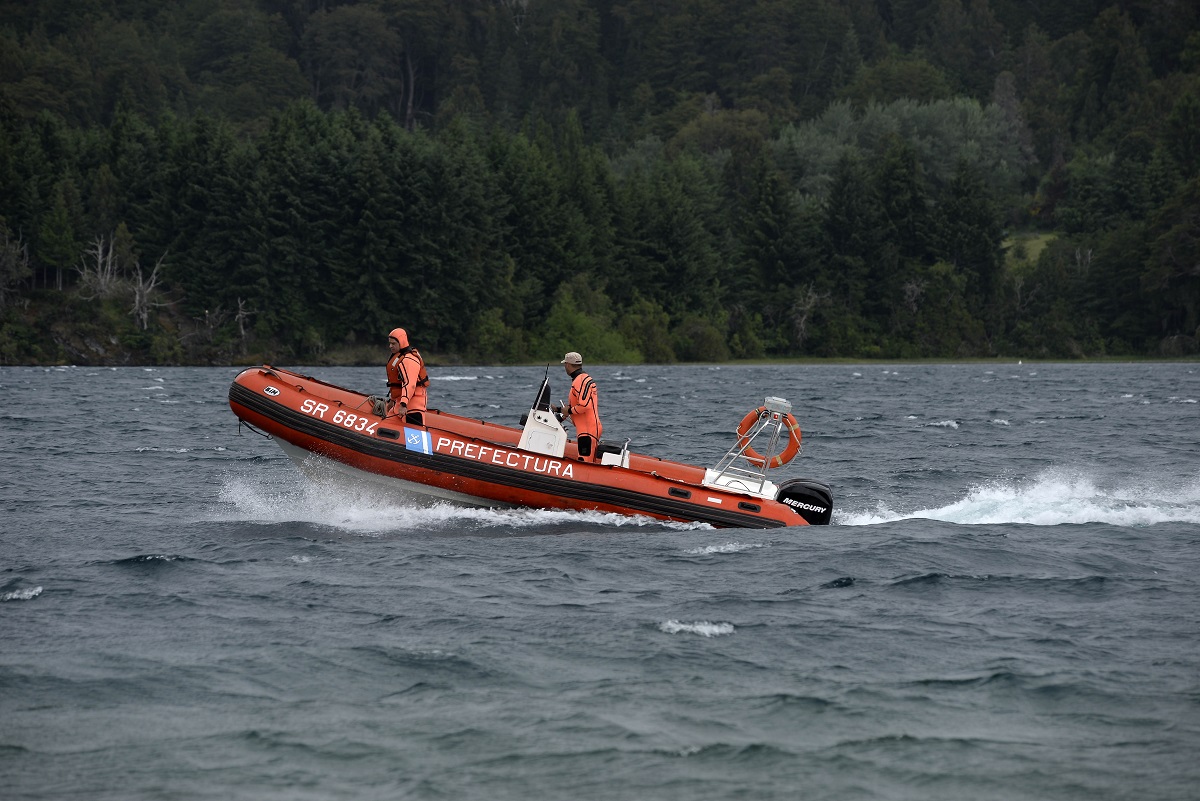 En un principio Prefectura destinó varios buzos y tres embarcaciones al plan de rastrillaje. También participaron motos de agua y un helicóptero. Curual dijo que hoy permanecen sólo con una embarcación, que también se ocupa del patrullaje en el lago, donde es intensa la actividad náutica y la presencia de bañistas.
