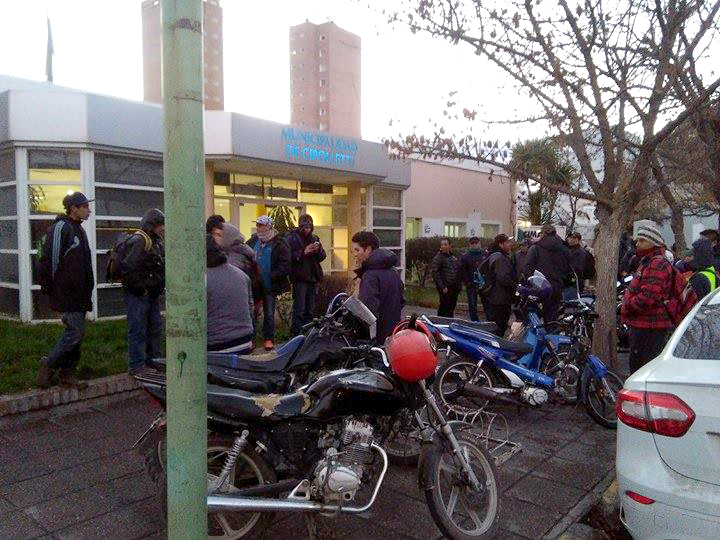 Anoche, pasada la 1:30, Policías de la Comisaría Cuarta desalojaron el edificio municipal de Recaudación, en el cual se encontraban 3 empleados municipales, que desde ayer a la mañana mantenían un reclamo encadenados. Actualmente llevan adelante una asamblea y varios sectores continúan con retención de servicios.