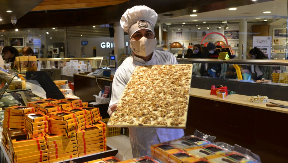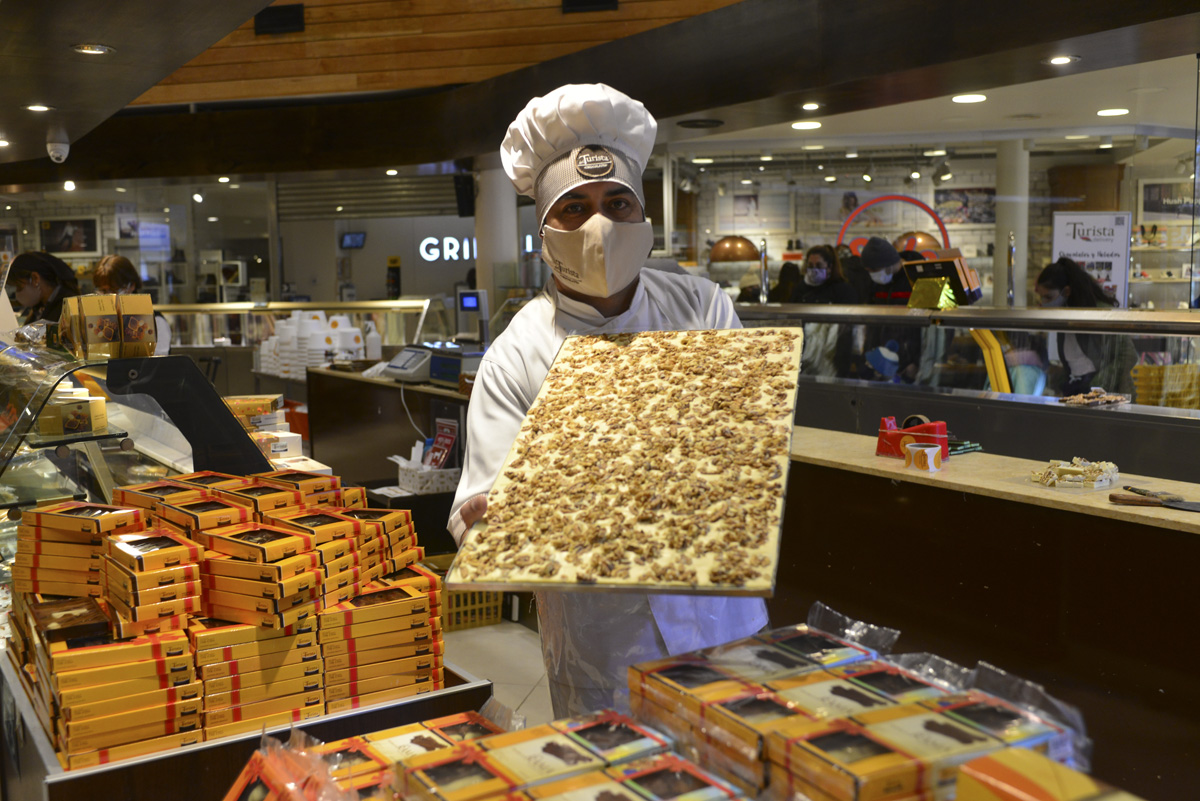 La hora pico en el centro, coincidieron varios comerciantes, a las 18 cuando las confiterías se llenan. “Veníamos muy temerosos pero vino mucha gente del Valle la primera semana de vacaciones y ahora, de Buenos Aires. Estoy haciendo la misma cantidad de chocolate que hacía en una temporada normal. En verano también trabajamos así”, reconoció optimista Carlos Zapata, de la chocolatería El Turista.