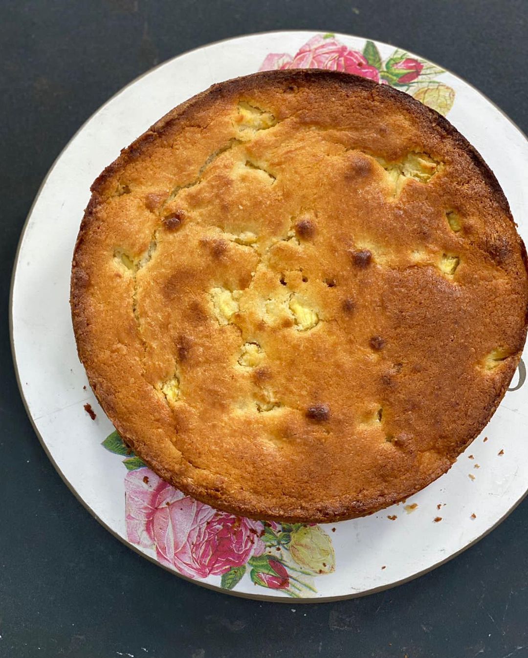 Verter en un molde para torta de 18 cm de diámetro ligeramente untado con manteca y enharinado. Hornear 1 hora aproximadamente ó hasta que esté dorada y un palillo salga limpio. Dejar enfriar un poco en el molde antes de desmoldar sobre una rejilla. Espolvoree con azúcar impalpable para servir.