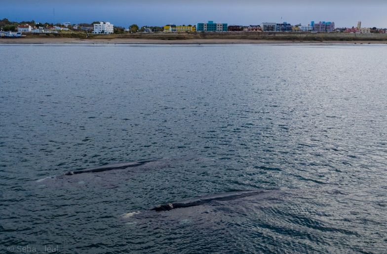 Tres ballenas francas pasearon durante unas cuatro horas a unos 300 metros de la costa en Las Grutas. Las imágenes fueron captadas por Sebastián Leal en la primera bajada. Coincidió con un domingo con permiso para salir a caminar por la playa en Las Grutas y varios vecinos las vieron en una jornada que empezó lluviosa y luego de puso soleada antes de volverse ventosa.