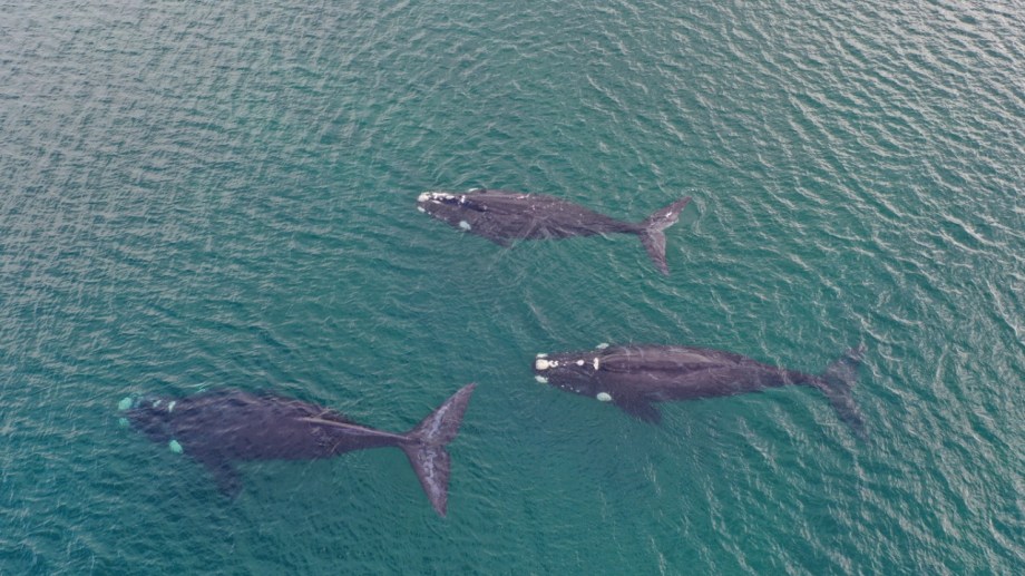 Tres ballenas francas pasearon a 300 metros de la costa en Las Grutas