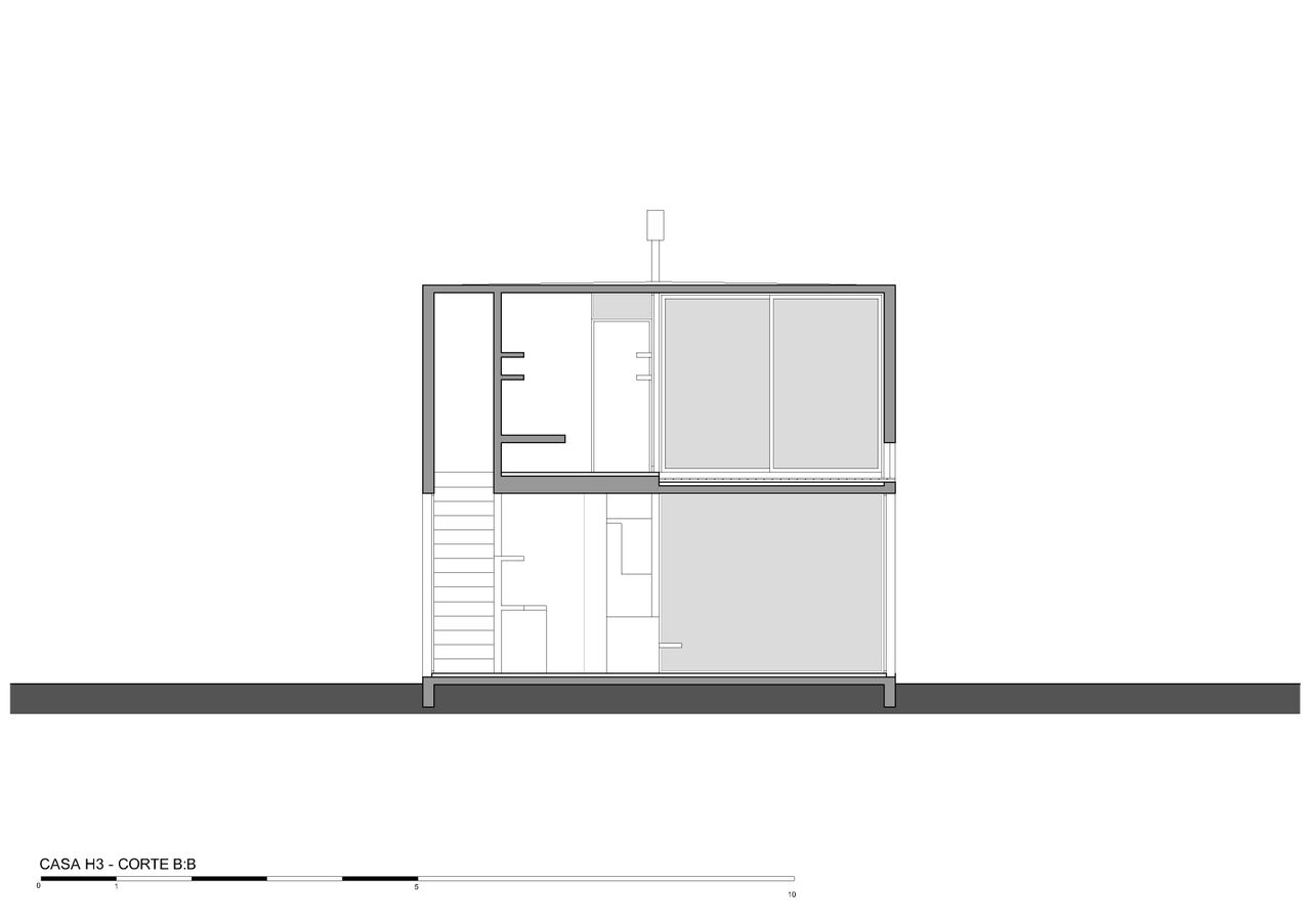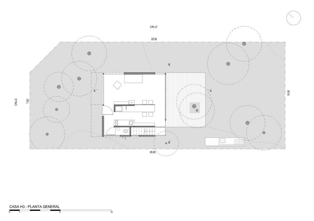 En un pequeño lote en esquina de aproximadamente 210 metros cuadrados ubicado a ocho cuadras respecto al mar se emplaza H3, una casa de pisada mínima, en la que se apuntó al máximo aprovechamiento de las dimensiones del terreno y de su entorno natural.