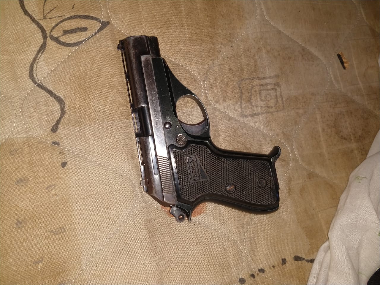 En el primer domicilio la policía incautó dos armas de fuego, una pistola calibre 22 largo y un revólver calibre 22, que estaban en poder de las dos personas dentro de la vivienda, se trata de hombres de 46 y 38 años, además había una escopeta tipo tumbera, municiones de diversos calibres y en el patio una planta de marihuana.