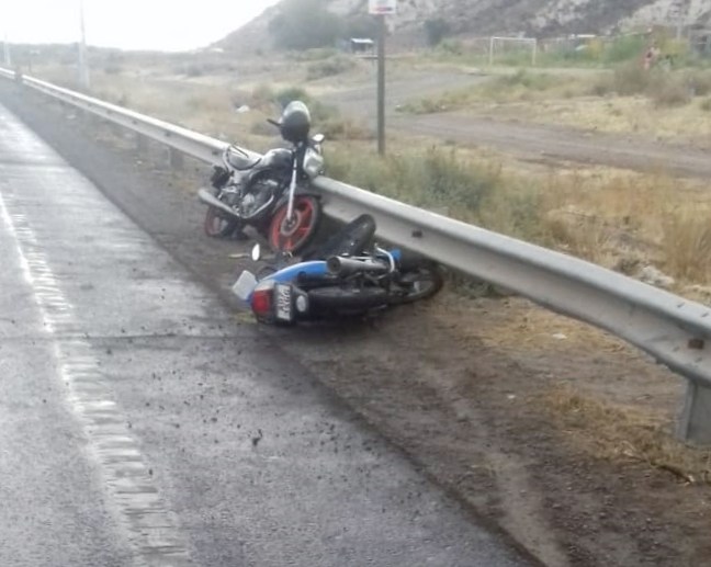 El accidente ocurrió a las 11:50 de hoy a la altura del kilómetro 1.134 de la ruta 22, frente al barrio El Frutillar de Villa Regina, cuando desde esta localidad hacia General Enrique Godoy (sentido este-oeste), circulaban dos motos, una de las cuales sufrió el reventón del neumático trasero que provocó que el conductor perdiera el control y chocara contra la segunda moto que iba a la par.
