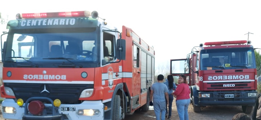 En el lugar trabajó personal de la Asociación de Bomberos Voluntarios de Centenario y arribó la ambulancia del hospital Natalio Burd que trasladó a las tres personas afectadas por el fuego.