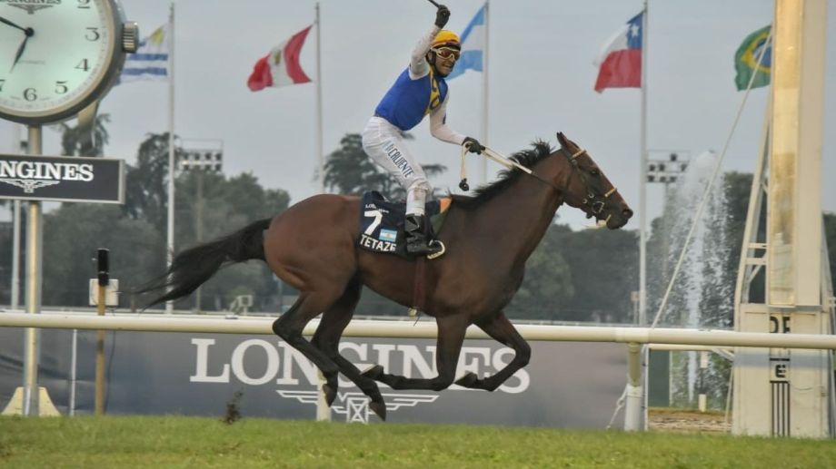 El potrillo argentino Tetaze con al monta del jockey Gustavo Calvente se quedó con la séptima carrera que se llevo a cabo en la lluviosa jornada del sábado en San Isidro por el Gran Premio Latinoamericano (G.1 – sobre 2.000 metros, césped pesado).