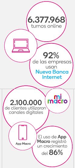 Durante 2020, más de 2.1 millones de clientes utilizaron los canales digitales de la entidad, un 82% lo hizo a través de App Macro.