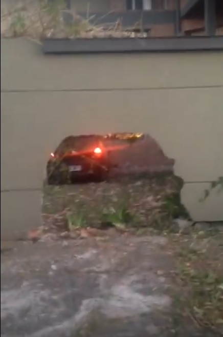 El espectacular accidente sucedió en la madrugada de hoy. Un joven perdió el control de su vehículo y terminó dentro del patio de una casa.