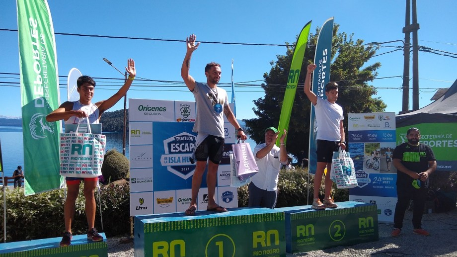 Con un tiempo de 2:11:07, el bonaerense Iodice se quedó con el primer lugar del podio, tras superar una exigente prueba de 1.500 metros de natación en las frías aguas del lago Nahuel Huapi, 40 kilómetros de bicicleta y 20 kilómetros de pedestrismo.