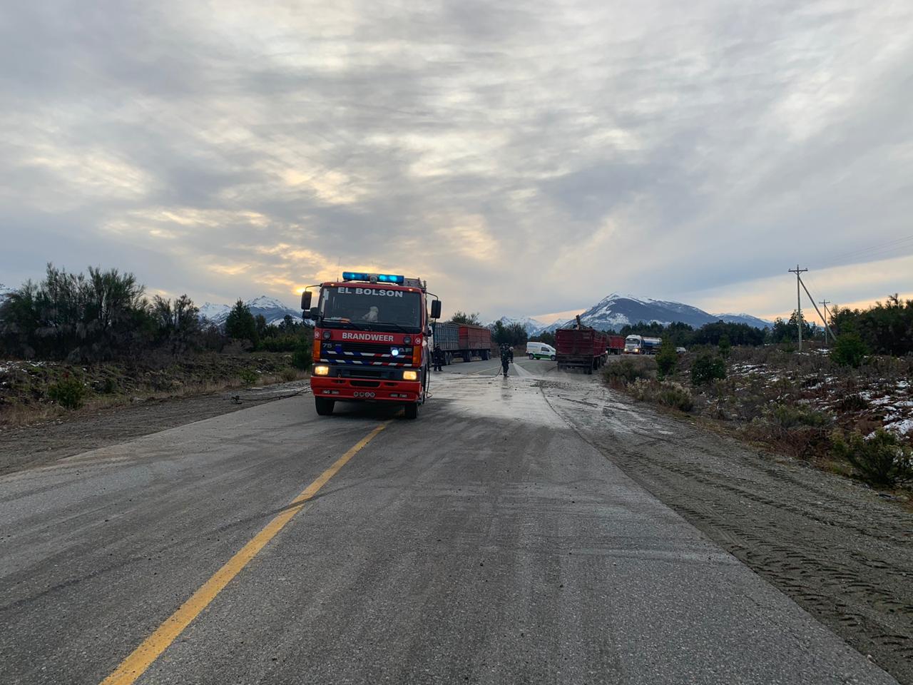 El jefe del cuartel de Bomberos de El Bolsón, Alejandro Namor, relató que debieron romper el parabrisas para que el chofer pudiera salir ya que el camión volcó de su lado. El hombre de 53 años fue trasladado al hospital de esa localidad.