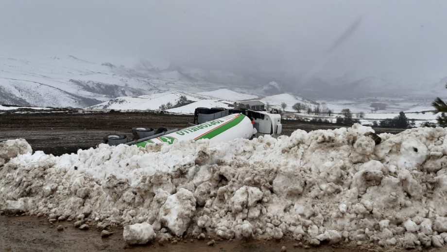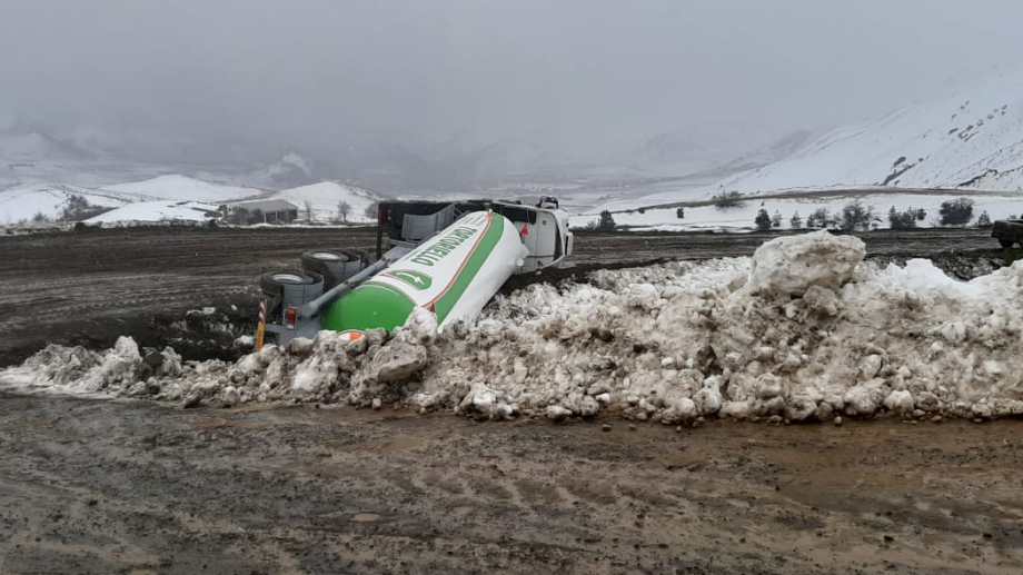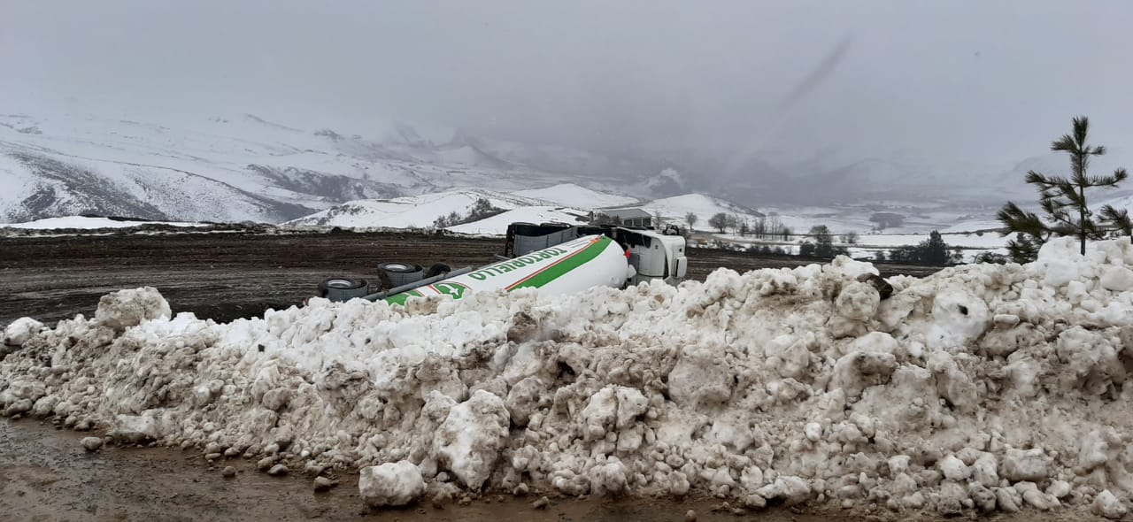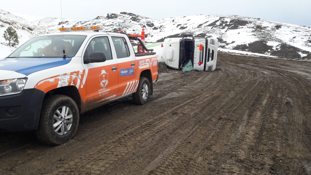 El titular de la dirección Provincial de Seguridad Vial, Lucas Gómez explicó que kilómetros atrás, el personal del organismo asistió al camión que trasporta gas licuado colocando las cadenas para poder subir la cuesta del Rahue, y un vehículo lo acompañaba mientras recorría el camino de ripio que tiene sectores con hielo y barro.