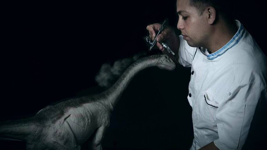 Una vez terminada la obra “lo que hice fue pintar con manteca de cacao -que también es un producto comestible- utilizando un aerógrafo, y colorantes liposolubles -que también son alimenticios- para darle el color de la piel original de los dinosaurios, que es un tipo gris de los elefantes”, manifestó Edgardo.