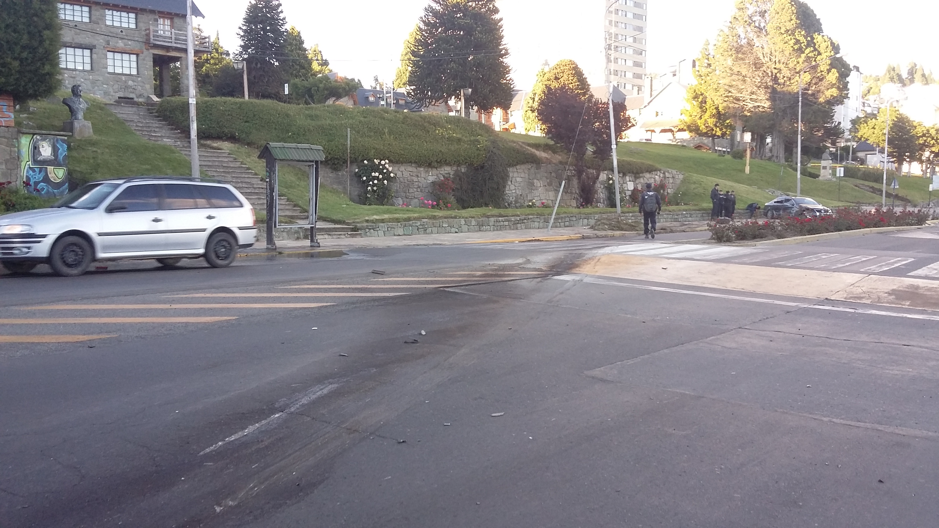 El automóvil hizo un trompo y finalmente colisionó con un poste y quedó incrustado de culata en el paredón de las escalinatas del Centro Cívico. De inmediato el conductor descendió del auto sin tener lesiones. Llevaba el cinturón de seguridad colocado.